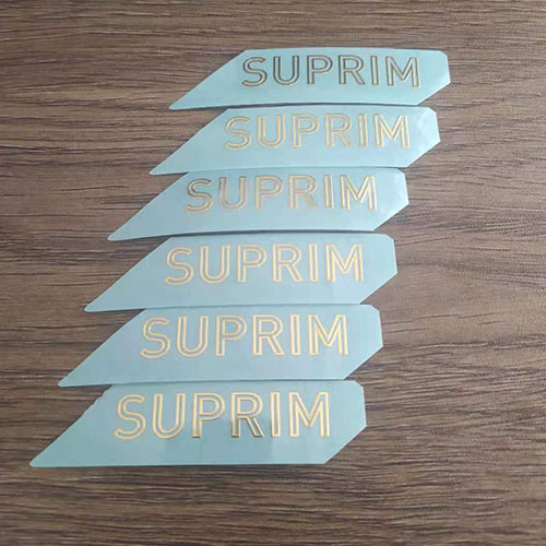 這個金色貼紙的材質(zhì)是鎳,也叫電鑄薄標,當然可以根據(jù)您的要求制作不同的顏色、圖案、字母等內(nèi)容。