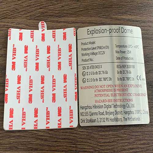 這個是不銹鋼銘牌,主要粘貼在機械設(shè)備上面,背膠使用超強粘力的3MVHB膠,不用擔心粘貼不牢固的問題,再加上不銹鋼蝕刻工藝,耐腐蝕好,不易褪色。