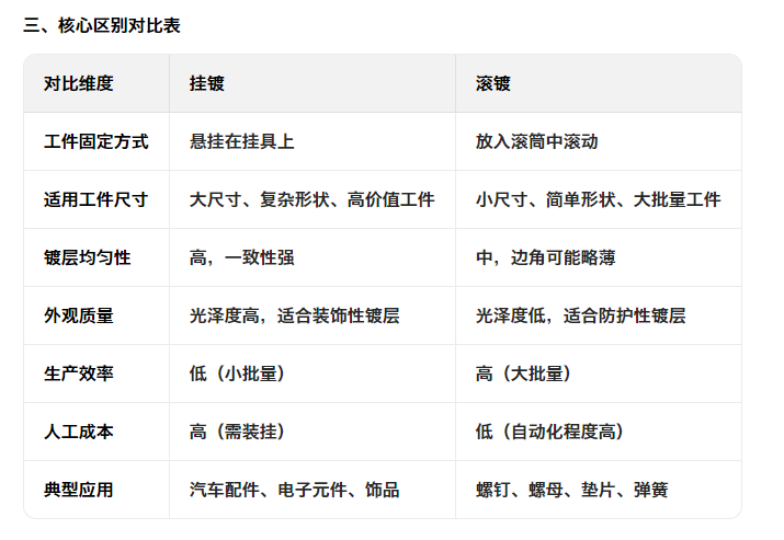 實際生產中,可根據工件特性、鍍層要求和產能需求綜合選擇,部分場景也會結合兩種工藝的優(yōu)勢進行優(yōu)化。