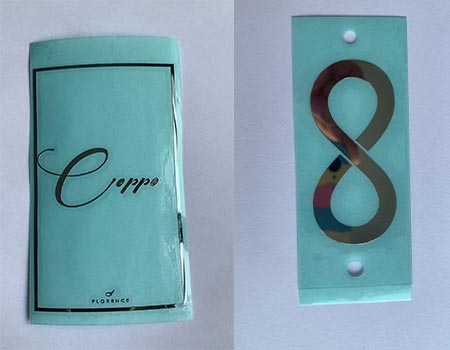 二是將不干膠先印到轉(zhuǎn)移紙上,干燥后將轉(zhuǎn)移膜上的電鑄文字及圖案貼到膠膜上,壓緊后將不干膠膜轉(zhuǎn)移到電鑄文字及圖案的背面。