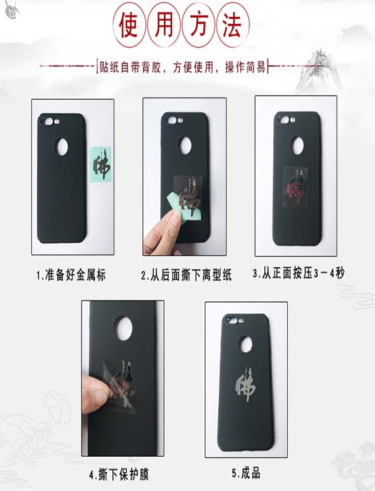 很多朋友都比較喜歡個(gè)性產(chǎn)品,包括金屬標(biāo)牌也是,也有金屬個(gè)性標(biāo)牌。就是金屬標(biāo)牌上面的圖案有個(gè)性,比如說可以龍圖,老虎圖案,或者動(dòng)漫,佛教,道教圖案等等。以下圖片可以看看,分別是:財(cái)神符、平安符、五雷符、百解消災(zāi)符、發(fā)財(cái)符、轉(zhuǎn)運(yùn)符,也可以直接粘貼在手機(jī)殼上,或者你想到的平整的物體表面都行。